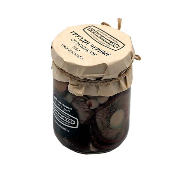 Солёные грузди чёрные, рассол (вода, специи, соль).