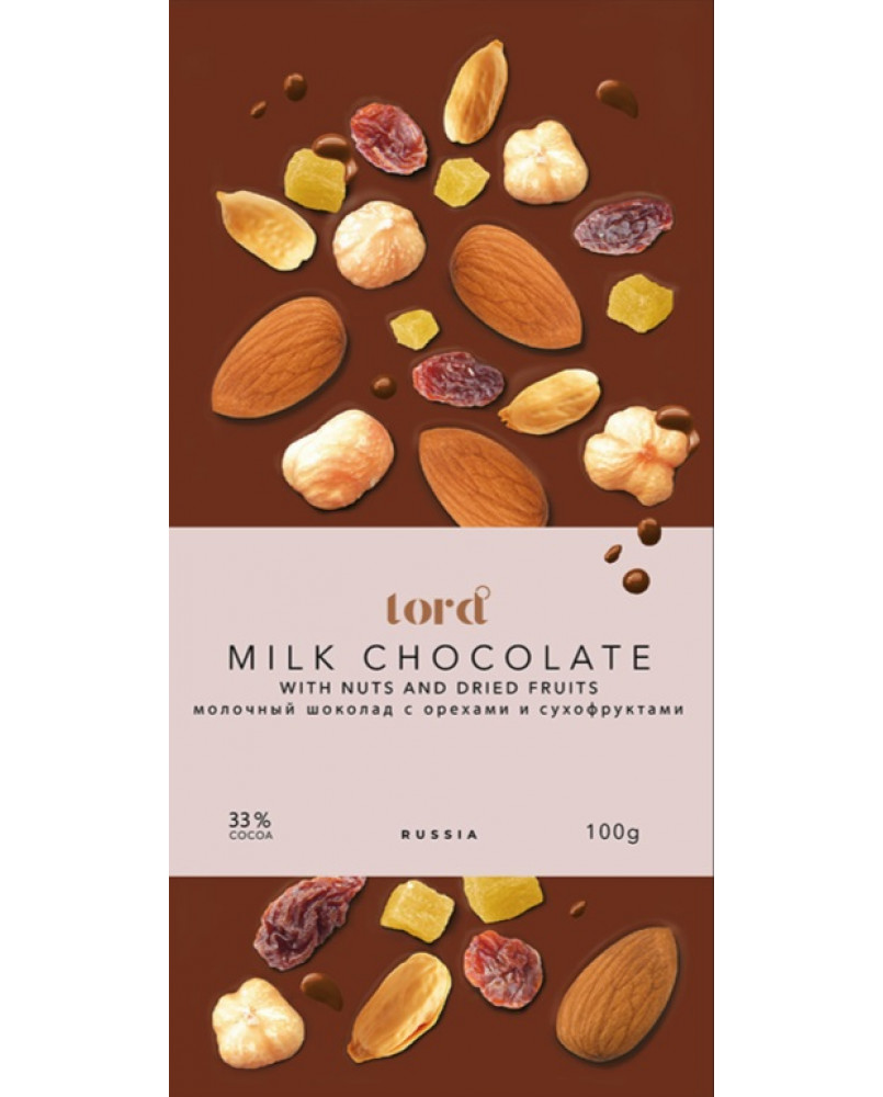 Гармоничное сочетание нежного шоколада, хрустящего миндаля и фундука, ароматного арахиса, сладких цукатов. Идеальный выбор для тех, кто ценит насыщенный вкус и разнообразие текстур в каждом кусочке.
