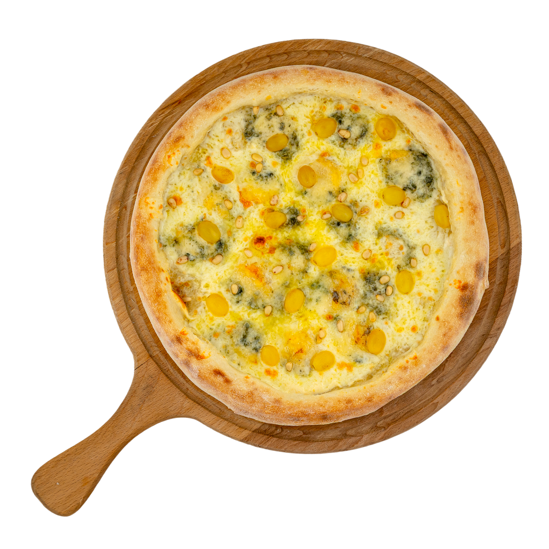 Пицца на тонком тесте «Горгонзола Виноград»  — гастрономическая классика с ярким контрастом вкусов. Тягучая моцарелла и пряная горгонзола раскрываются на фоне спелого винограда; каждый укус — мягкая сливочность, лёгкая пикантность и деликатная сладость.
