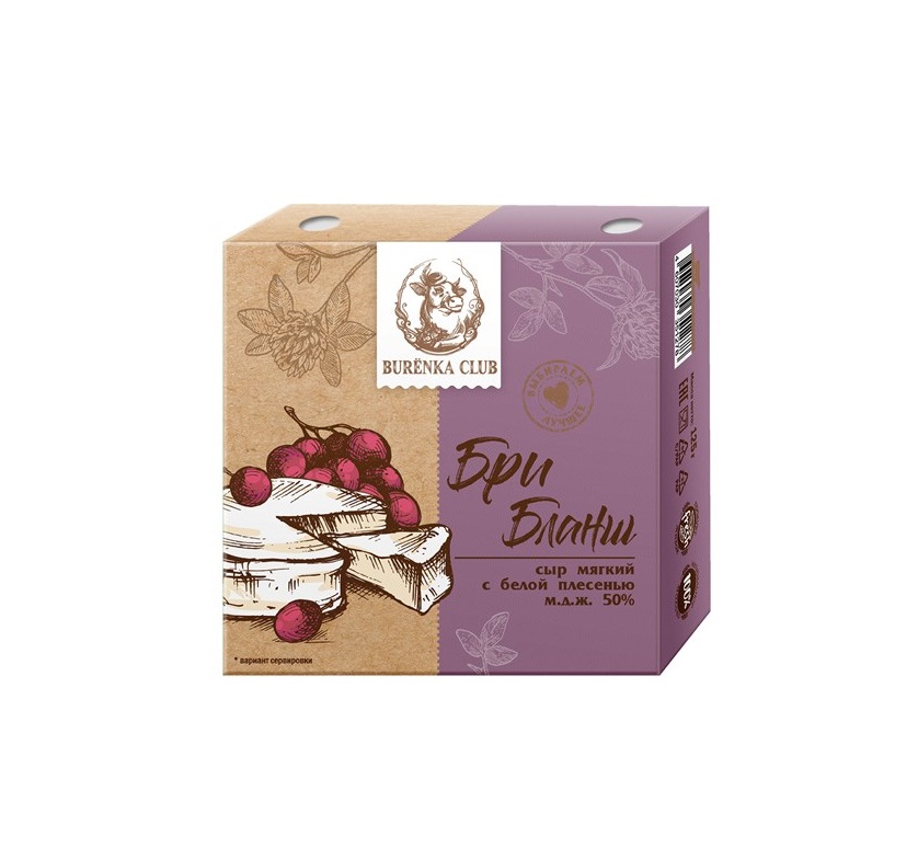 Бри Бланш Burenka Club - классический сыр с благородной белой плесневой корочкой. Созданный по оригинальной французской технологии сыр обладает нежным сливочным вкусом, имеет бархатистую съедобную корочку из благородной белой плесени и изысканный аромат.