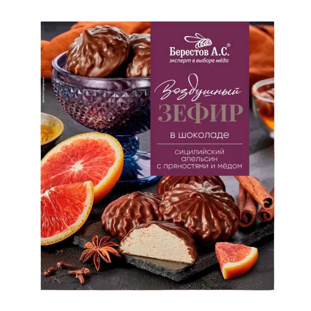 Зефир в шоколаде с сицилийским апельсином, пряностями и мёдом 155 гр. Берестов А.С.